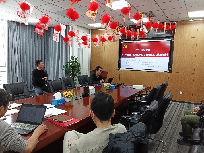 会议最后一项议程是集体学习由中央党校经济学教研部曹立教授讲授的《“十五五”时期经济社会发展的重大战略任务》视频党课。曹立教授立足中国式现代化建设全局,围绕 “十五五” 规划相关建议和纲要展开系统解读,明确了 “十五五” 作为基本实现社会主义现代化关键承启期的时代定位与面临的发展环境,阐释了以习近平新时代中国特色社会主义思想为核心的指导思想和六大核心遵循原则,提出了高质量发展、科技自立自强等核心发展目标,并聚焦培育新质生产力、做强国内大循环、推进共同富裕、统筹发展和安全四大核心战略任务方向作重点讲解,最后强调要以重大工程项目为牵引,强化政策协同、坚持党建引领,凝聚全社会力量保障 “十五五” 规划目标落地,为 2035 年基本实现社会主义现代化夯实基础。通过视频党课学习,与会党员同志对于 “十五五” 时期经济社会发展的时代背景、核心遵循和重点任务有了更为系统的认识,更加明确了今后科研工作的重点方向。