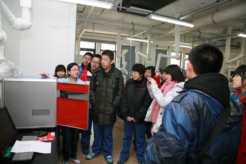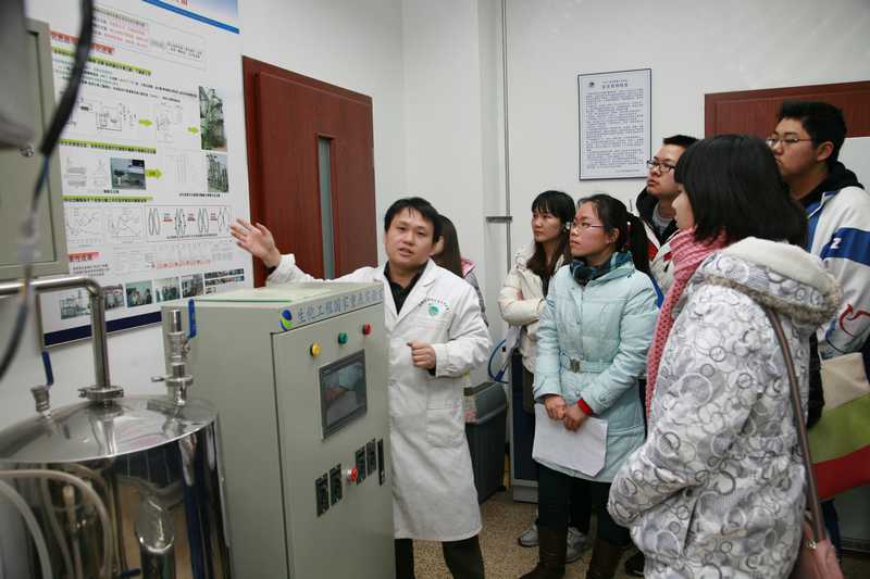 在生化工程国家重点实验室,科研人员为大家详细讲解了秸秆变废为宝的转化过程。通过参观高压反应釜等实验装置,观看秸秆转化燃料乙醇的演示过程,学生们初步了解了如何将废弃物有效的进行回收利用。