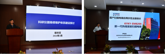 会议邀请中国科学院植物研究所平台处处长赵长征作“科研仪器维修维护体系建设探讨”大会报告,从国家需求、仪器维修维护进口依赖的现状和风险、国内仪器维修维护企业的难题以及仪器维修维护应对策略等方面进行了系统介绍。北京中科科仪光电科技有限公司尹贻恒工程师作“国产扫描电镜应用示范主题培训”的报告,介绍了新一代国产场发射扫描电镜KYKY-EM8200主要功能及应用领域。会上,研究所对2025年度优秀仪器管理员和开放共享贡献奖获得者进行了表彰,优秀仪器管理员分别作了交流报告,并与与会人员进行了深入交流。