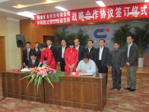 10月24日,过程工程所与招金矿业股份有限公司在山东招远签署战略合作协议,过程工程所党委书记陈运法、科技开发处处长谭强强、谢裕生研究员、叶树峰研究员与招金矿业股份有限公司路东尚董事长、时文革副总裁、王彩霞副总工等有关人员出席了签约仪式。
