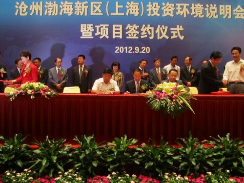 9月20日,渤海新区在上海举办2012投资环境说明会,推介渤海新区的投资环境、发展优势。过程工程所党委书记、副所长陈运法,科技开发处处长谭强强和生化工程国家重点实验室副主任万印华应邀参加会议并签署重要协议。