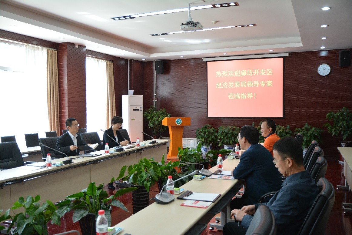 4月18日廊坊经济技术开发区经济发展局副局长周文胜一行调研过程工程所廊坊分部,过程工程所所长助理谭强强及相关科研和管理骨干陪同调研。