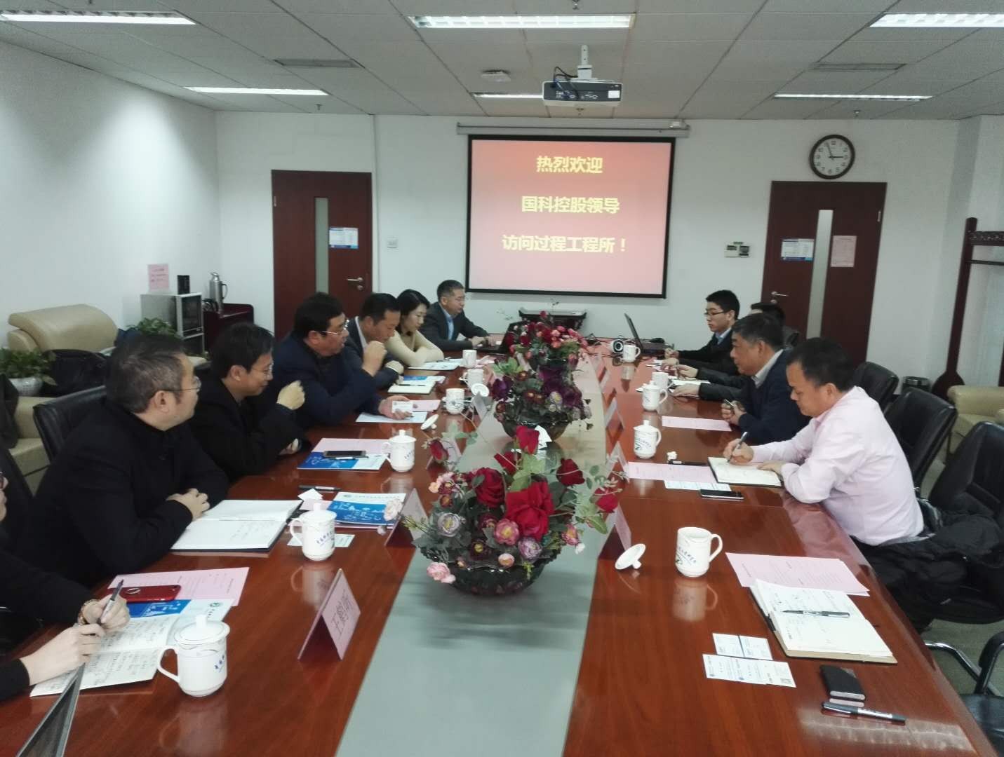 近日,中国科学院控股有限公司(简称国科控股)总经理索继栓携联泓新材料董事长郑月明、中科院成果转化基金总经理曾军等一行访问过程工程所,过程工程所党委书记陈运法、所长助理谭强强及相关科研和管理骨干参加了会议。