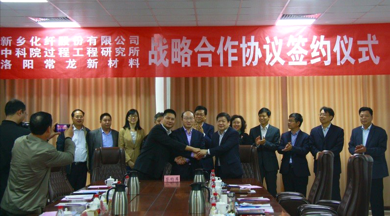 4月3日上午,中科院过程工程所与新乡化纤股份有限公司及洛阳常龙新材料科技有限公司,在新乡市举行离子液体绿色纺丝技术及战略合作签约仪式。所长张锁江院士、新乡市人民政府副市长职伟、新乡化纤公司董事长邵长金与常龙新材料公司总经理曾鹏飞等出席签约仪式。签约仪式由新乡市科技局局长刘玫琳主持。