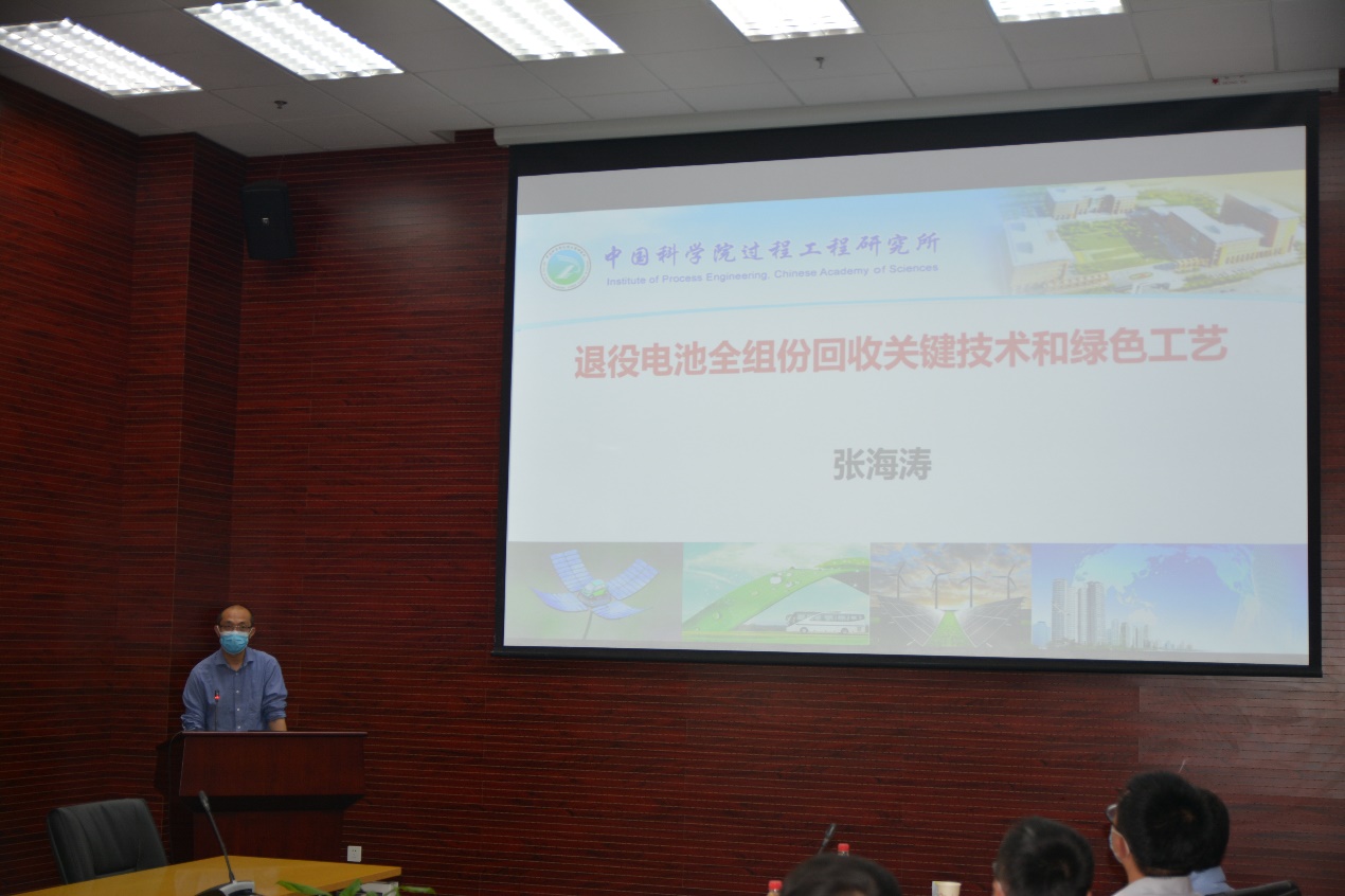 张海涛介绍“退役电池全组份回收关键技术和绿色工艺”
