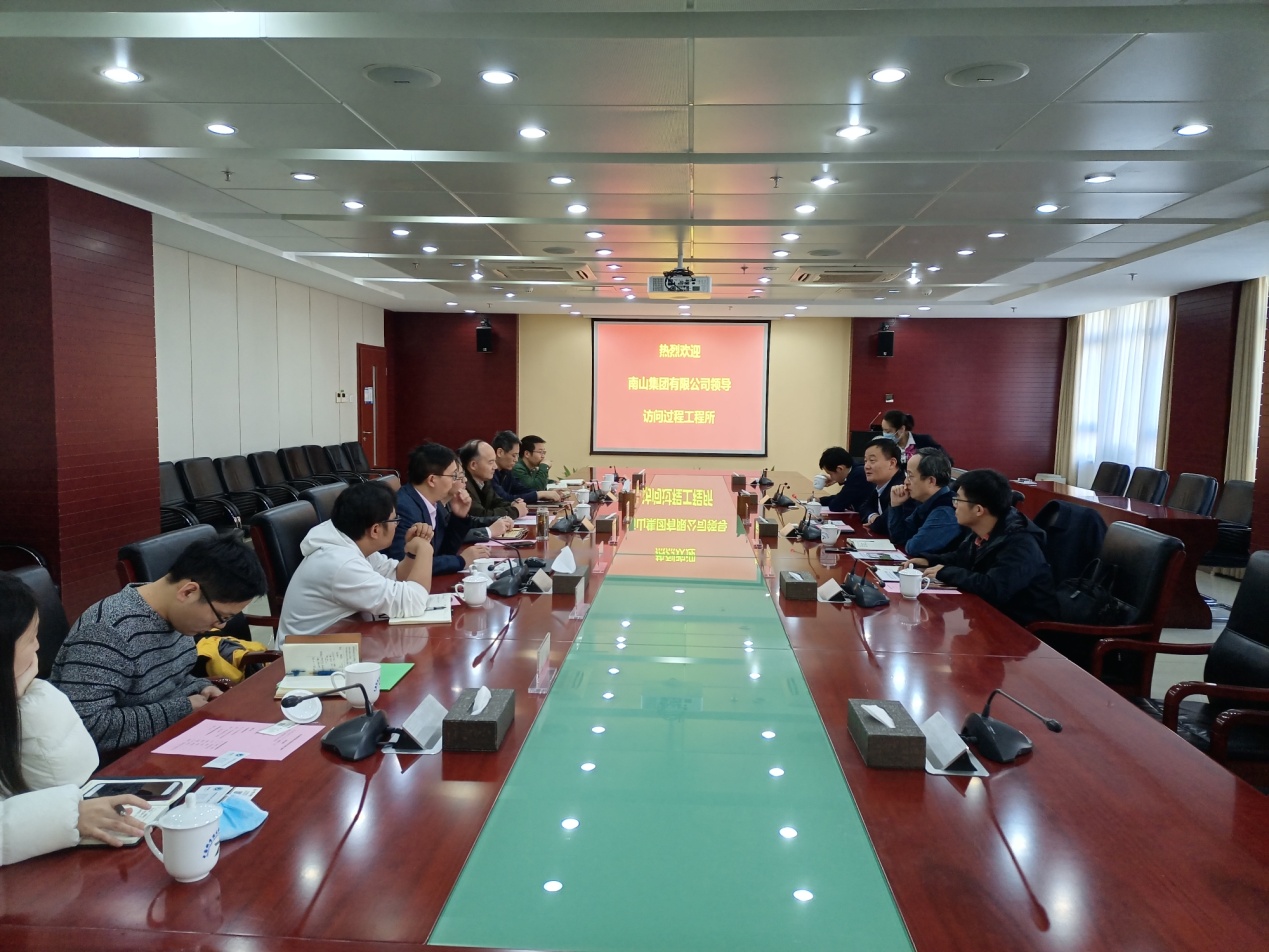 11月12日,南山科教集团总裁潘峰、 南山科学技术研究院化工研究院院长孙绪红访问过程工程所,随行人员还有南山科学技术研究院研发工程师刘翔宇、中科院山东综合技术转化中心主管夏俊杰。过程工程所副所长杨超、总会计师高莲及部分科研、管理骨干十余人参加了交流。