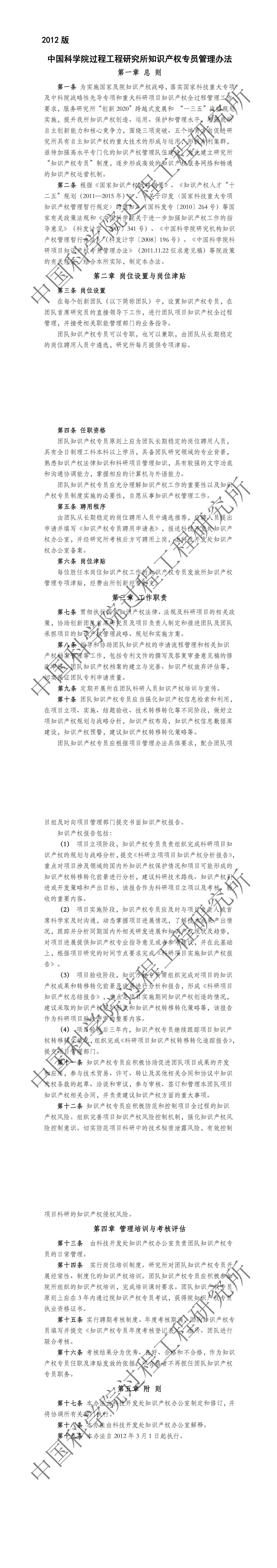 过程发开发字〔2012〕27号 中国科学院过程工程研究所知识产权专员管理办法