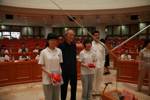 郭慕孙院士首先讲述了制作几何动艺的理念和工艺,对在北京市第二中学建立“郭慕孙几何动艺实验室”表示欣慰,并对广大师生表达了良好的祝愿和殷切的希望。随后,郭慕孙先生向北京市第二中学赠送了亲手制作的几何动艺作品,并向学生签名赠书。