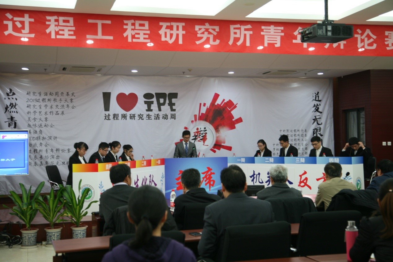 辩论赛由过程工程所党委书记陈运法主持,邀请了中科资源公司党委书记张平、空间中心党委书记黄康平、电工所党委书记张福宽、化学所党委书记王笃金、纳米中心党委书记唐裕华及过程工程所党委副书记、副所长李猛力担任评委。