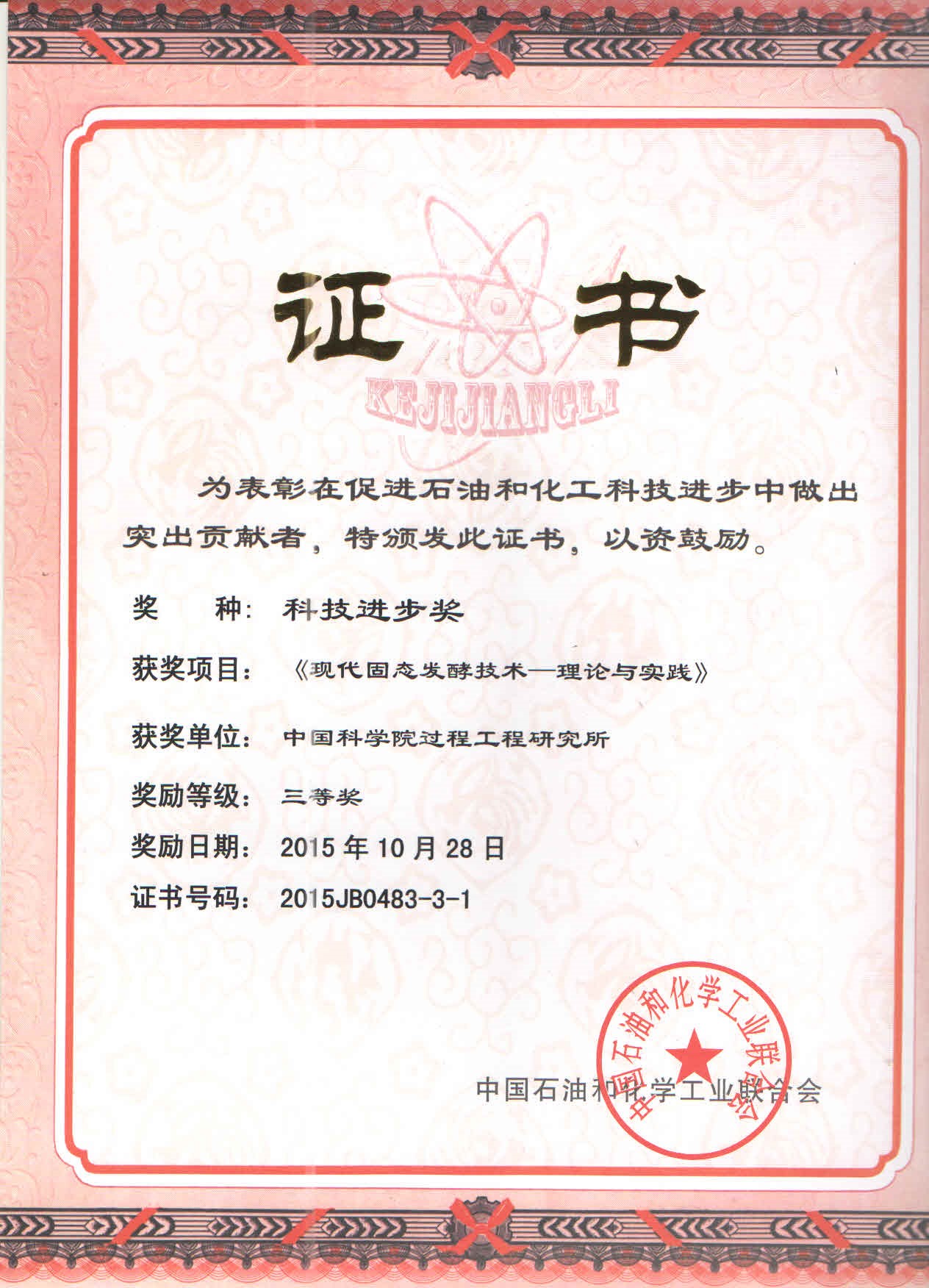 《现代固态发酵技术—理论与实践》一书荣获2015年度中国石油和化学工业联合会三等奖
