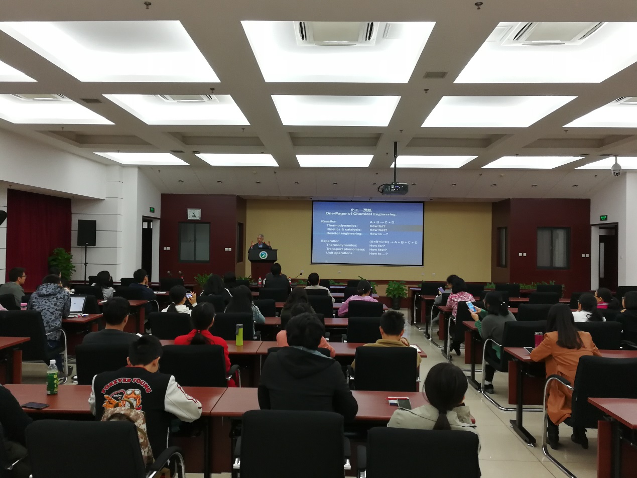 朱世平教授的邀请报告题为“化学工程是什么?聚合反应工程能干什么?”,由过程工程所副所长朱庆山主持,吸引了近百名科研人员和研究生参加。报告中蕴含了朱教授对化学工程及聚合反应工程多年的深刻认识和总结,既有经典理论与思考,又有朗朗上口的打油诗,并和大家分享了在科研探索中的故事和自创的幸福公式。朱世平教授的报告深入浅出,幽默生动,引发了与会科研人员和研究生的热烈讨论。