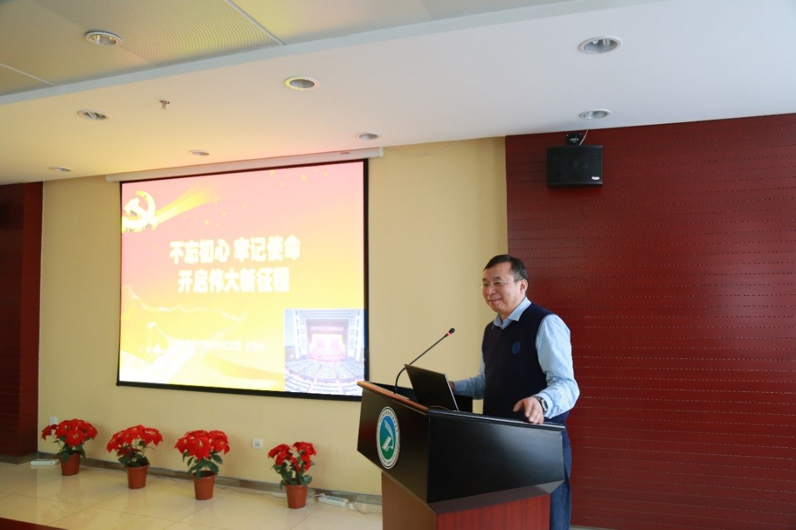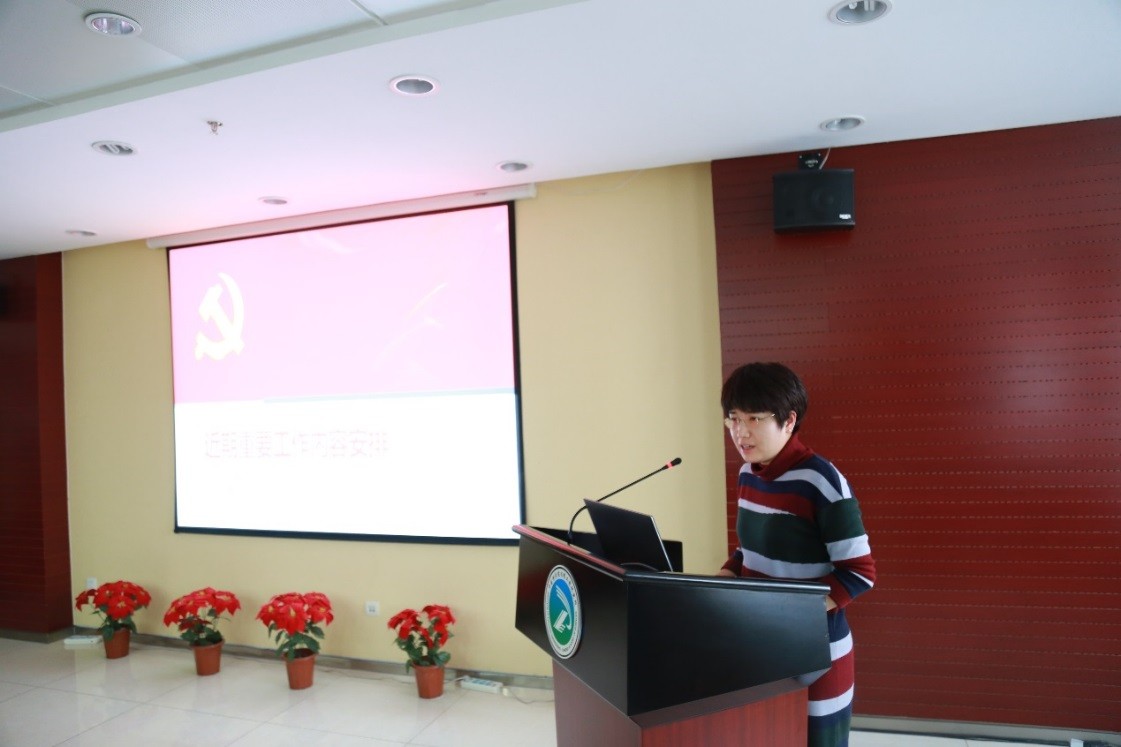 张鸿翔首先对杨建国同志的到来表示欢迎,并按照惯例对第四季度征集的群众意见进行了说明和解答。在支部书记微党课环节,介尺度党支部书记王维和生物剂型党支部书记杜昱光结合学习十九大精神,立足科研工作实际为大家分享了学习心得。王维以“不忘初心继续前进”为主题,对十九大报告中的重大思想、定位、基本方略及关于科技创新方面的论述进行解读,并就十九大提出的“美丽中国,科技强国,质量强国”,结合研究部介尺度科学的创新发展,分析绿色化、智能化的发展方向,对实践是理论之源、矛盾论等论断加以探讨,号召大家不忘初心、继续前进,为新时代中国特色社会主义伟大事业做出应有的创新贡献。杜昱光以“不忘初心 牢记使命 开启伟大新征程”为题,带领大家回顾了中国共产党建党到新中国成立、改革开放、跨入新时代的伟大历程,对十九大提出的新概念、新提法进行解读,并结合自身生物工程成果转化工作谈学习十九大报告的体会,就如何顶天立地、如何实现新时代的颠覆性技术、如何肩负社会责任等方面提出自己的思考,鼓励大家在新形势新条件下开拓进取,走出可持续的发展创新之路。